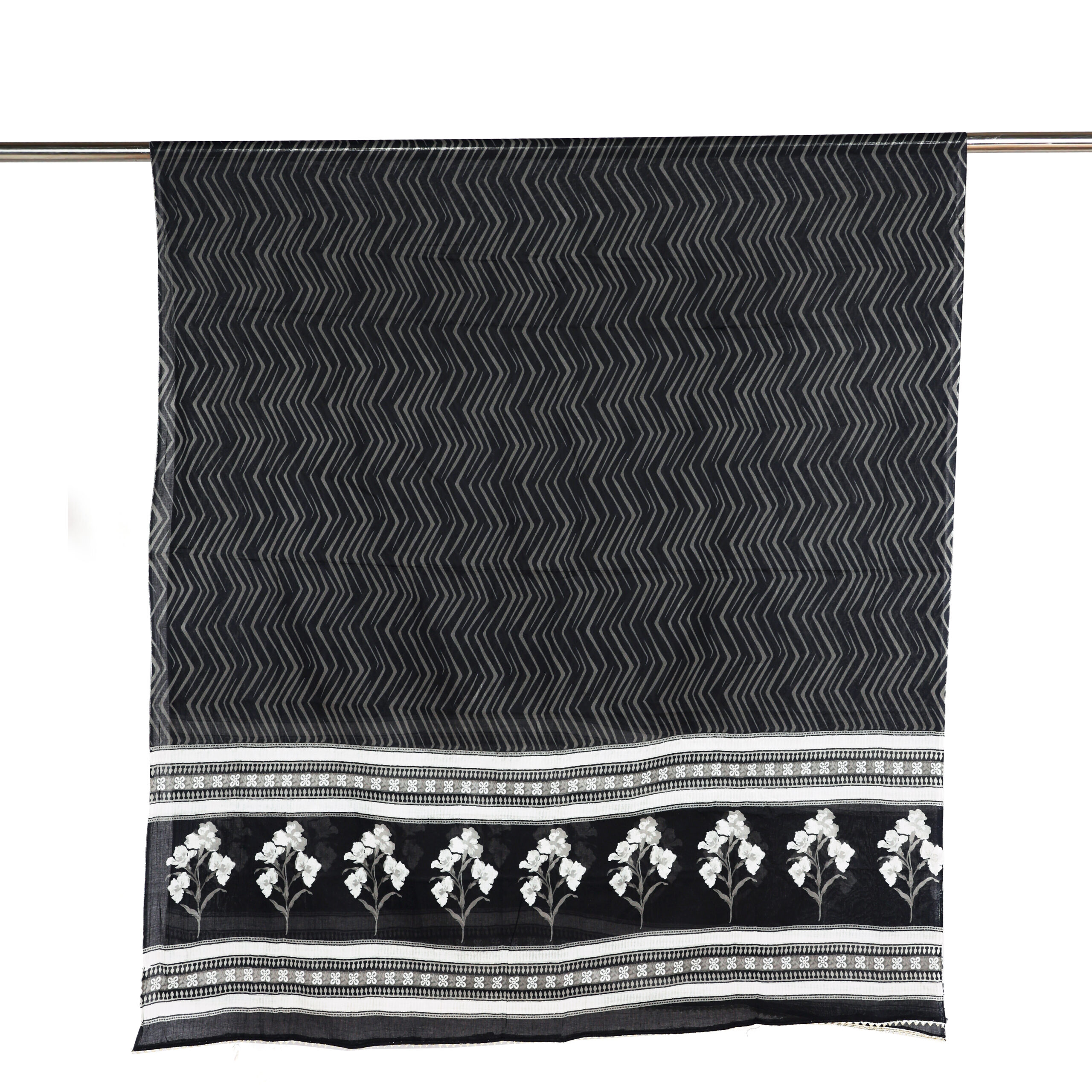 Black & White Floral Printed Unstitched Suit Set with Dupatta